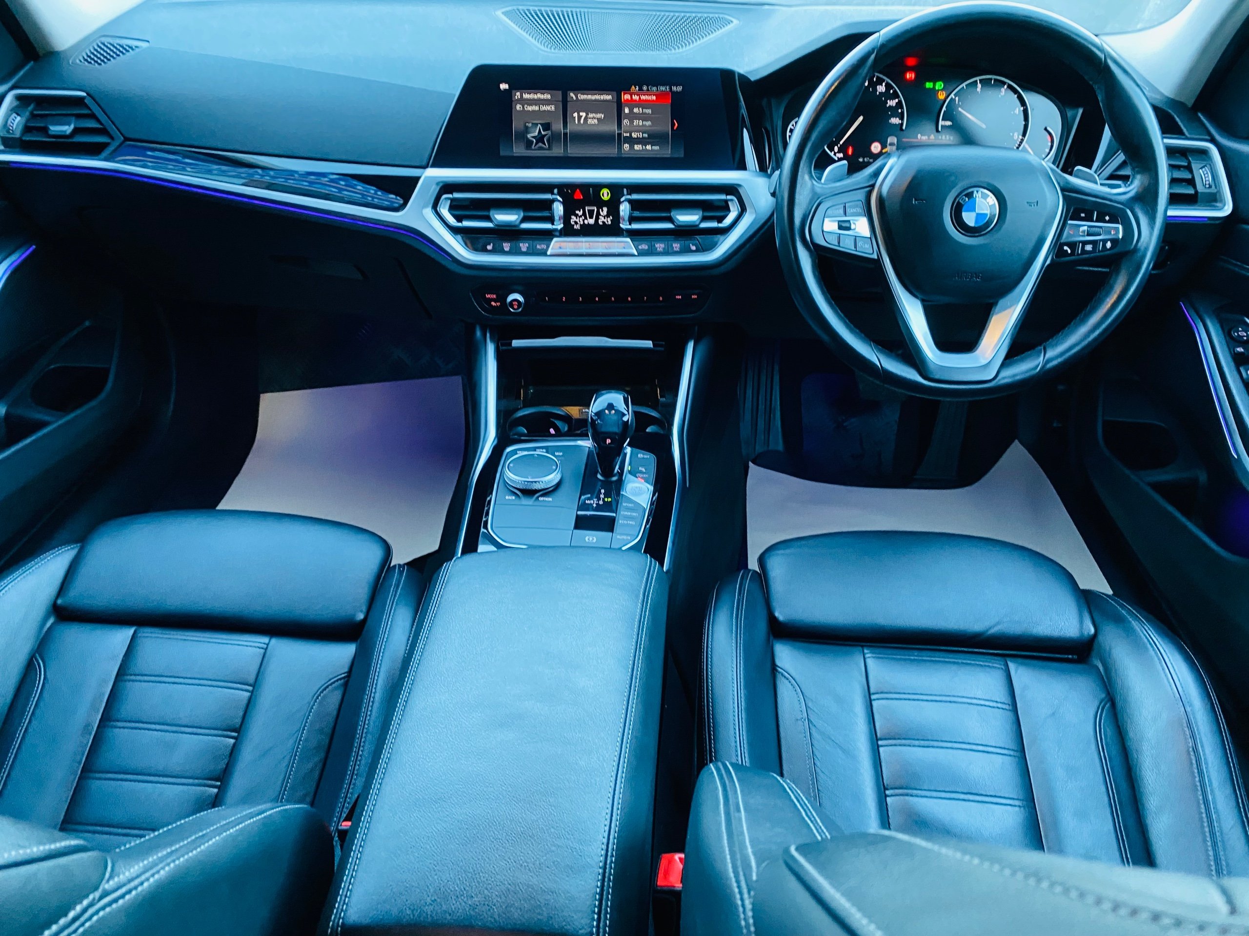 This ULEZ compliant 2019 BMW 3 Series 2.0 320d Sport Saloon with 76968 miles on the clock is a sleek Diesel-powered vehicle equipped with a 5 seats, 4 doors, and an automatic transmission. This Mediterranean Blue beauty comes with Vernasca Leather - Black with Grey Stitching interior and includes features such as 12V Power Socket in Front Storage Compartment, BMW ConnectedDrive Online Services, and BMW Emergency Call. With an MOT expiry date of 25/09/2026, this reliable car is ready to hit the road with its 190 ps engine, providing both style and performance.