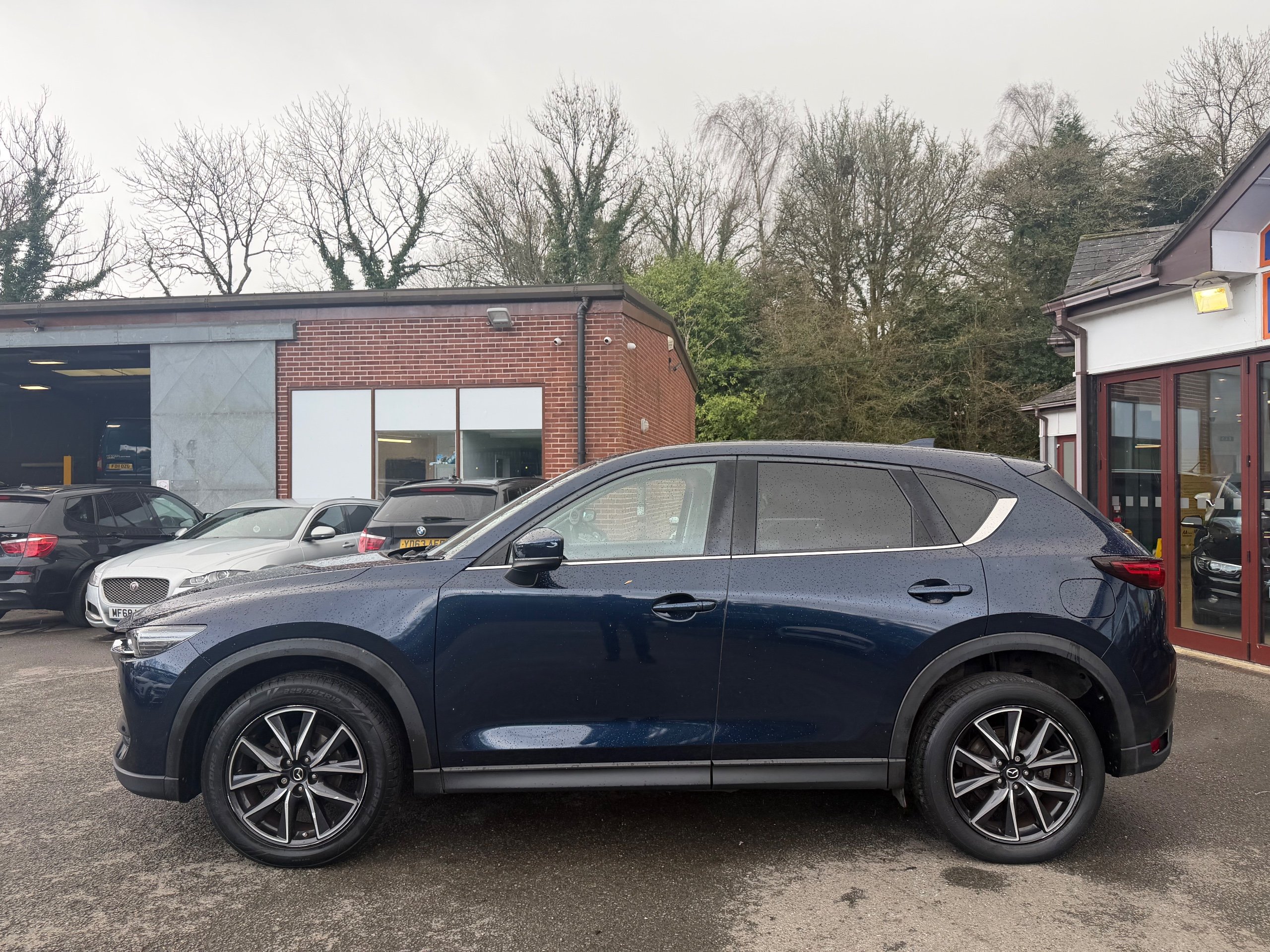 This 2018 Mazda CX-5 2.2 SKYACTIV-D Sport Nav SUV with 64716 miles on the clock is a Diesel-powered, ULEZ compliant vehicle with MOT expiry on 08/03/2027. It boasts 5 seats and 5 doors, making it perfect for family excursions. Equipped with a 150 PS engine, this SUV has a manual transmission and is Euro 6 compliant. The exterior features 19in Alloy Wheels in Gunmetal, body-colored bumpers, and electrically adjustable, heated, power-folding door mirrors with integrated indicator lights. Additionally, it has a dual exhaust system and electric windows with one-touch auto down-up and timer function, making it a versatile and stylish choice for any journey.
